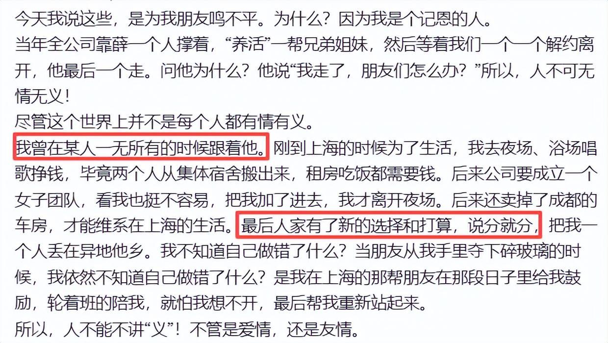 而段曦则表示,当年薛之谦一个人撑着“养活”一帮朋友,是有情有义之人,所以自己才会突然出来说话。