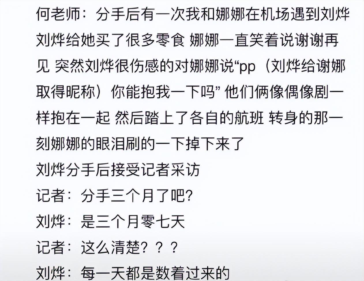 两个人在一起整整6年,分手时双方都很痛苦,刘烨甚至直言“恨不得找个湖就跳”。